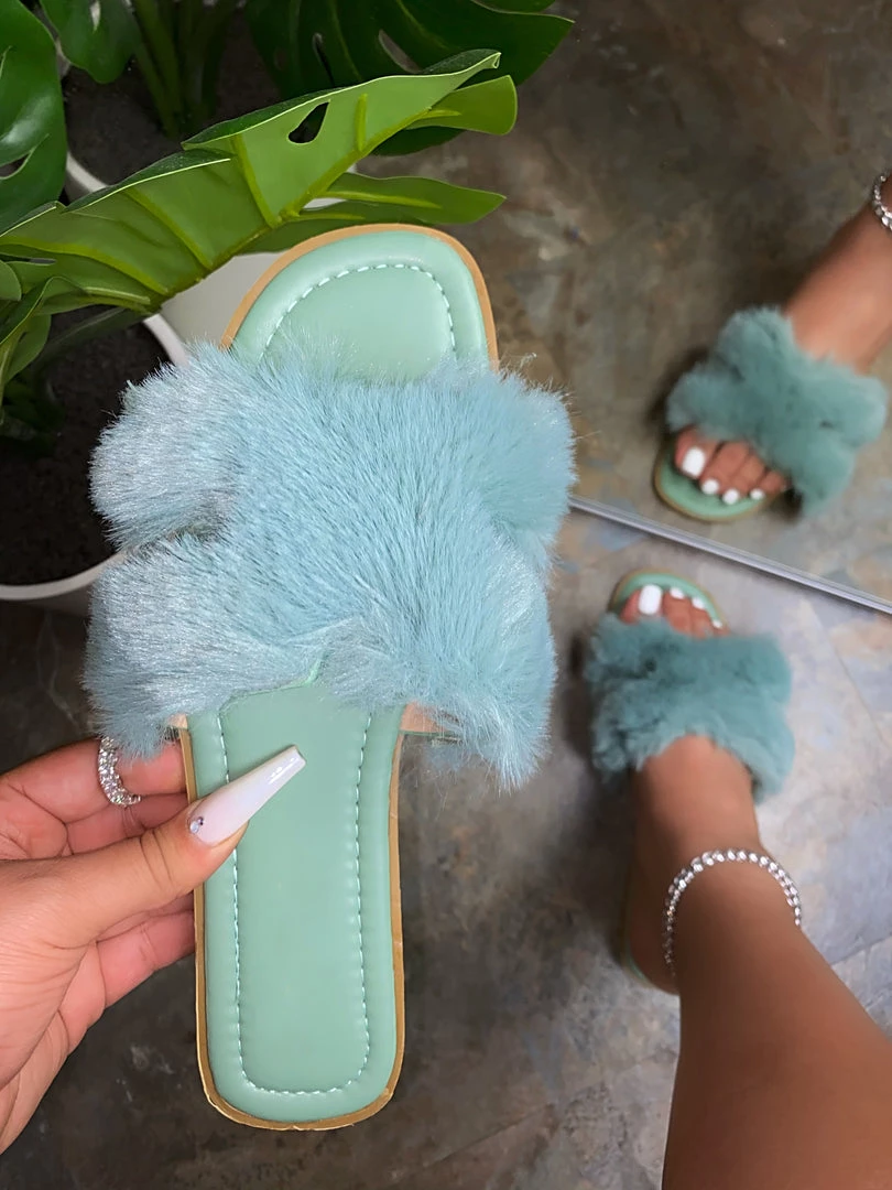These sandals are amazing! The mint color is so fresh, and the fur adds a playful touch. They’re comfortable and perfect for summer.
