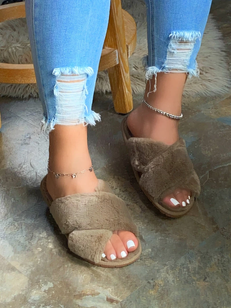 - Criss-Cross Faux-Fur Straps